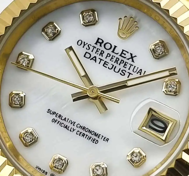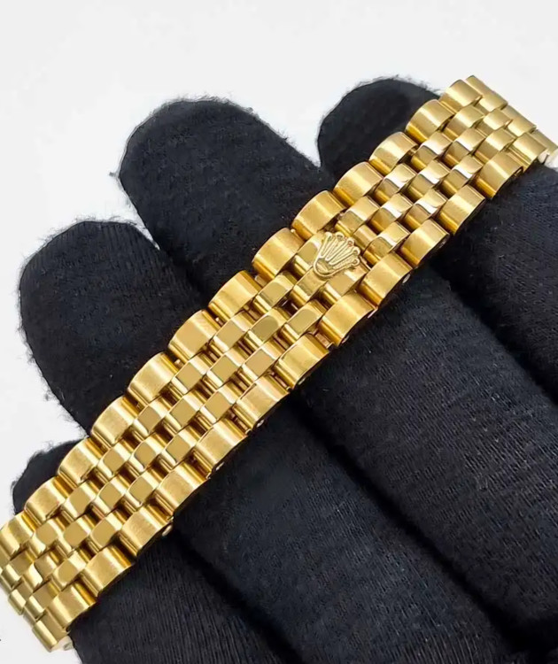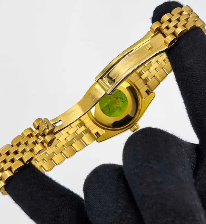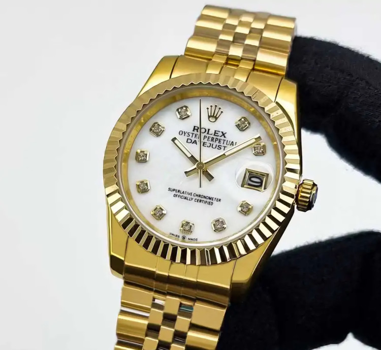 ساعت رولکس دیجاست زنانه با بند مدل پرزیدنت، مدل های کپی تمام طلایی و صفحه صدفی، ساعت Rolex President Datejust 31-GW دارای کیفیت ساخت خیلی خوبی است، بدنه و بند تماماً از جنس استیل ضد زنگ ساخته شده و شیشه آن ضد خش است، موتور ساعت نیز باتری خور ساخت ژاپن میباشد و در آخر باید بگوییم تمامی نگینها سنگ مخراج کاری شده است.